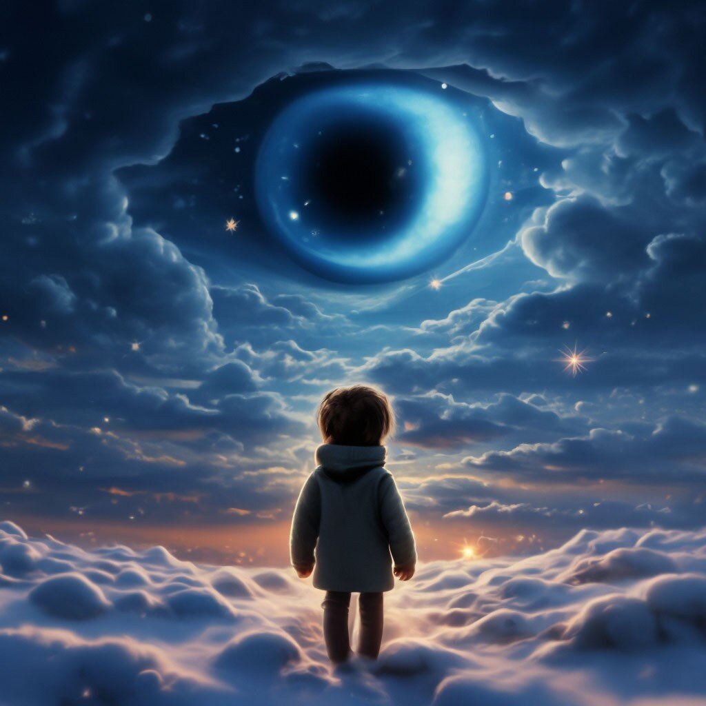 Однажды, зимой, в темную ночь, маленькая инопланетная форма жизни приземлилась на Землю. Это был маленький пришелец, который был очень любопытен и хотел узнать больше о планете, на которой он оказался. Он смотрел на окружающий мир с удивлением и восхищением. Облака, которые плыли над его головой, казались ему странными и необычными. Они были похожи на глаза, которые наблюдали за ним. Пришелец был поражен этим зрелищем и решил исследовать облака поближе. Он начал двигаться вверх по склону горы, где облака были особенно густыми и красивыми. Когда он поднялся на вершину, он увидел, что облака действительно имеют форму глаз. Они были огромными и величественными, словно смотрели на него свысока. Пришелец чувствовал себя маленьким и незначительным перед этими огромными облаками. Но он не боялся их. Он просто хотел узнать больше об этом удивительном мире, который его окружал. И вот, когда он стоял на вершине горы, наблюдая за облаками, он заметил, что они начали двигаться. Словно глаза,