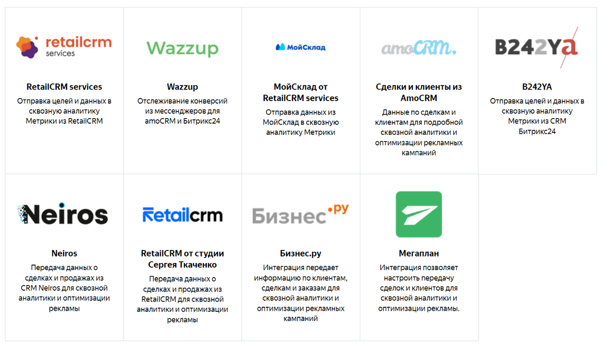 Мало кто знает, но Яндекс. Метрика может заменить, по крайней мере частично, сквозную аналитику. Ведь данные из CRM систем можно подгружать в Метрику. Тогда сделки по карточкам с метками (с рекламного трафика) отобразятся в отчетах и можно будет увидеть не только какой баннер или кампания привели конверсию, но и на какую сумму была покупка. Для этого, конечно, надо вести CRM. В целом это очень удобно. Особенно если подключить к Метрике и подтягивание расходов на рекламу. Для большинства популярных рекламных систем это делается в пару кликов. Итак, в одном интерфейсе вы сможете видеть и расходы на рекламу, и поведение пользователей на сайте, и реальные покупки(заявки, заказы). Это позволит вам быстрее и грамотнее принять решение о том, какие рекламные кампании эффективные, а какие стоит скорректировать. Это может подсветить какие-то проблемы. Например, отсутствие заказов при хороших показателях рекламы и активном поведении на сайте может вскрыть неочевидную форму заказа или же неконкуре