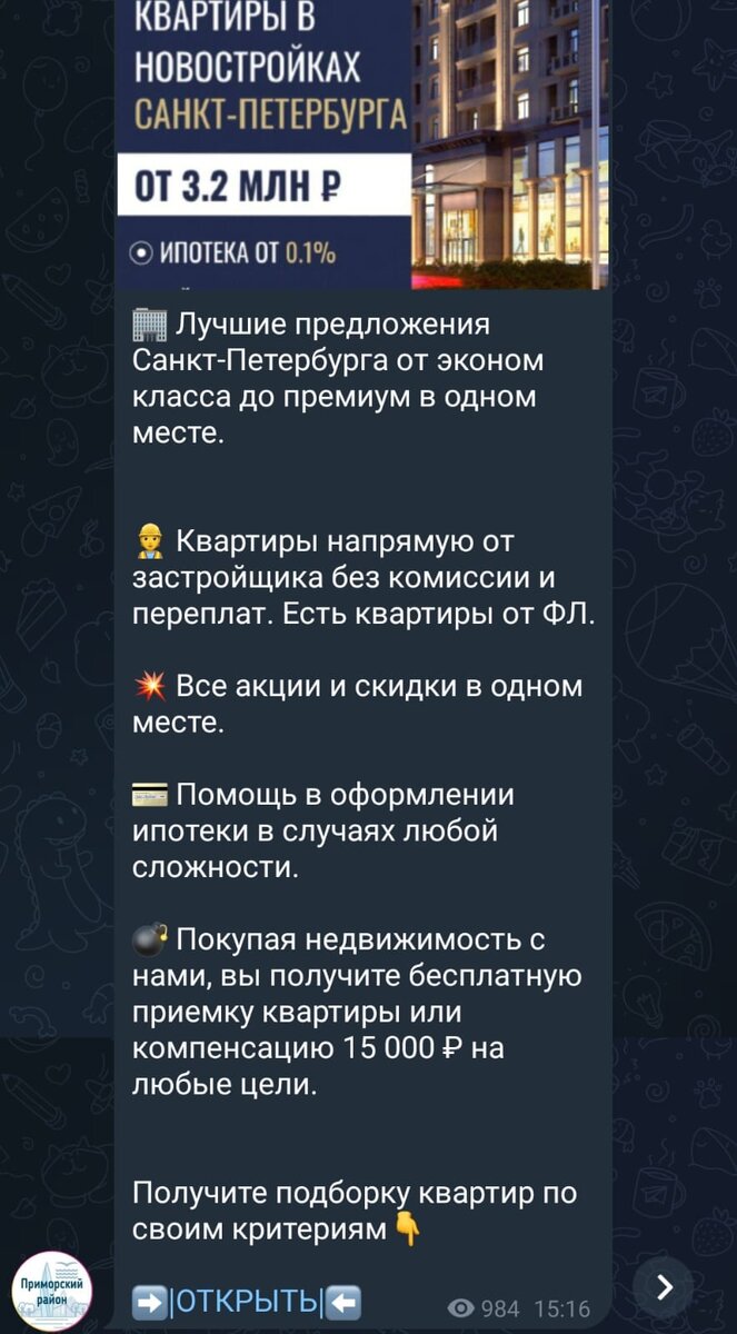 Дорогие подписчики и читатели, видели ли Вы когда-нибудь подобную рекламу новостроек в мессенджерах или социальных сетях?