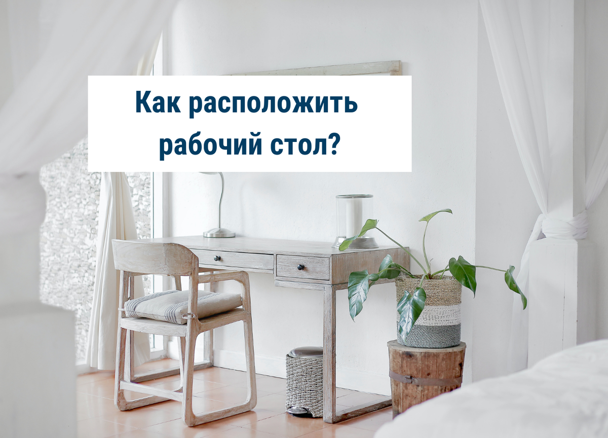 Расположение рабочего стола: где, как лучше? Давайте обсудим эту тему сегодня. Мы смотрим примеры работ дизайнеров, когда стол стоит у окна, и думаем, что это единственно верное его положение. Но это не всегда так. В первую очередь нам нужно четко разобраться с вводными данными и учесть ряд нюансов, а именно: Ориентация комнаты по сторонам света Если стол стоит у окна, которое выходит на юго-запад или запад, боюсь, что вам будет некомфортно работать за ним, потому что после обеда солнце находится именно там. Либо, если у вас в городе много солнечных дней, как у нас в Анапе, это весомый аргумент, чтобы отказаться от стола у окна, выходящего на восток/юго-восток, если вы работаете по утрам, или на запад/юго-запад, если работаете после обеда. Отопление под окном Если зимой вам приходится включать радиатор в комнате на полную мощь, то боюсь, что долго сидеть за столом вы не сможете. С такой проблемой я сама столкнулась, пока жила в Питера. Жар от батареи зимой обжигал мои ноги и мне приход