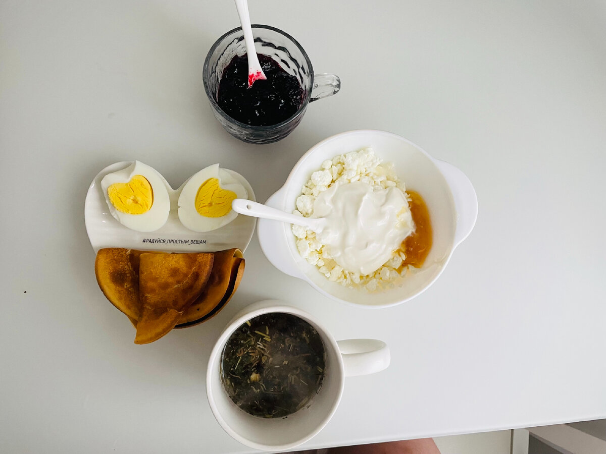 Поделюсь своим меню на 3 дня. Итак, день первый, завтрак: Сделала себе творог с мёдом и сметаной, яйцо, блинчики напекла с любимым вареньем из смородины, чай травяной (стараюсь чаи сейчас активно расхламить путём питья😀). На обед приготовила сразу несколько блюд, как раз хватило и на ужин: На приготовление всего ушло около часа: День следующий, завтрак: Омлет, колбаса, сыр, огурцы, к чаю тарталетка с варенной сгущёнкой. Обед не было времени приготовить, ходила по делам, зашла в магазин и пельменей захотелось: Давно не ела пельмешек, захотелось с соусом. И чай травяной с вафлями: Ужин ещё не наступил, но хочу приготовить запеканку с фаршем и картофелем (ни разу не готовила, думаю будет вкусно). Чуть позже тогда добавлю тут фото, заглядывайте, кому интересно. Или может и совсем будет другой ужин 😊 А что у Вас сегодня будет на ужин? P.S.: дорогие подписчики, Ваши лайки и комментарии имеют большое значение для автора и помогают развитию канала. Именно от них зависит насколько активно