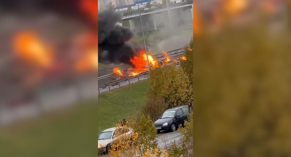 Мощный пожар вспыхнул рядом с магазином «Лента» в Ленинградской области. Очевидцы, проживающие в поселке Бугры, сообщили о взрывах. В пресс-службе МЧС уточнили, что ЧП произошло из-за столкновения легковой машины и «Газели», перевозившей баллоны с пропаном. Кадры с места событий появились в Сети. В Telegram-каналах начали распространять информацию от жителей поселка в Ленобласти. По их словам, громкие хлопки раздались на пересечении проспекта Культуры и КАД. После этого вспыхнул пожар рядом с гипермаркетом «Лента». Одно из видео последствий аварии появилось в канале «Мегаполис | ДТП и ЧП | Санкт-Петербург | Питер». В МЧС уточнили, что причиной возгорания стало ДТП с участием легковушки и «Газели». «Последняя перевозила 31 баллон с пропаном. В результате столкновения произошла разгерметизация трех баллонов, загорелся легковой автомобиль», — подчеркнули в ведомстве. Всего от РСЧС на место прибыло восемь специалистов и две единицы техники. Движение на дороге ограничили. Ранее очевидец пре