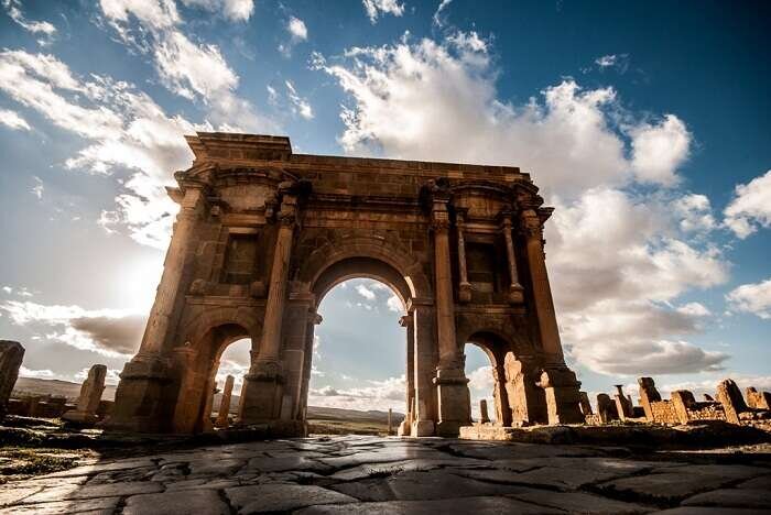 Древний город Тимга, расположенный в провинции Батна, считается одним из самых известных туристических достопримечательностей Алжира. Он славится своим богатым культурным и историческим наследием. Его называли «Тамугади», и археологи раскрыли причину, а вернее историю названия города. В Триумфальной арке города обнаружили «текст посвящения», на основании которого ученые выяснили, что римский император Траян основал город Тимга в 100 году нашей эры в честь своей сестры. На арку была нанесена такая надпись: «Колония Марциана Ульпия Траяна Тамугади». Первоначально это было римское поселение в восточном Алжире. Впоследствии название города было изменено на «Тимга». Это арабское слово, происходящее от исконно латинского слова со значением процветания или комфортной жизни. Древний алжирский город Тимга — единственный римский город на африканском континенте, сохранивший свою первоначальную форму и планировку. Во многих исторических исследованиях упоминается, что римский император Траян приказ