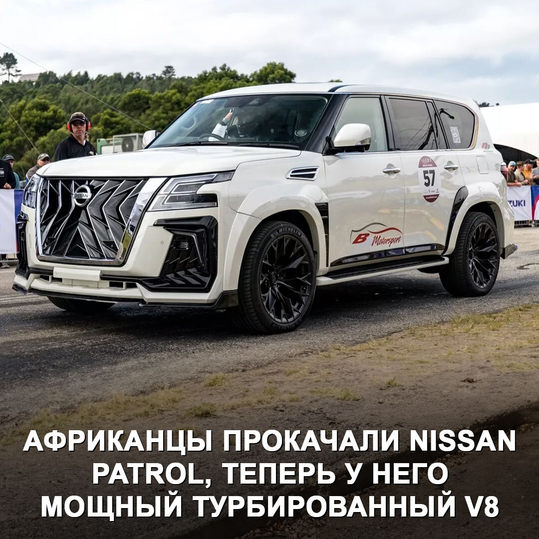 Африканские тюнеры прокачали Nissan Patrol. Получилось дико 😈 Ателье BB MotorSport из ЮАР продаёт собственную версию внедорожника под названием Black Hawk. У неё огромная решётка радиатора, агрессивный обвес, расширители колёсных арок и диски 22”. Тюнеры оснастили атмосферный V8 5,6 л системой наддува. Отдача выросла с 399 л.с. (560 Нм) до 530 л.с. (772 Нм). Трансмиссия осталась стоковой, коробка — всё тот же 7-ступенчатый автомат. По неофициальным данным, разгон до сотни теперь занимает около 5 сек. Максималка не сообщается, у заводского внедорожника она составляет 210 км/ч. Среди оснащения Black Hawk — музыка Bose, экраны 8” с наушниками для пассажиров, круиз, камеры по кругу, подогрев и вентиляция передних сидений. Стоит такая машина около $117 000, или почти 11 000 000 ₽. Кстати, это поколение Nissan Patrol выпускается уже с 2010 года и в последнее время появляется всё больше тюнинг-проектов на его основе. Может быть, пора Ниссану выпустить новый Патрол? 🤔 #дромновость #юар #тюни