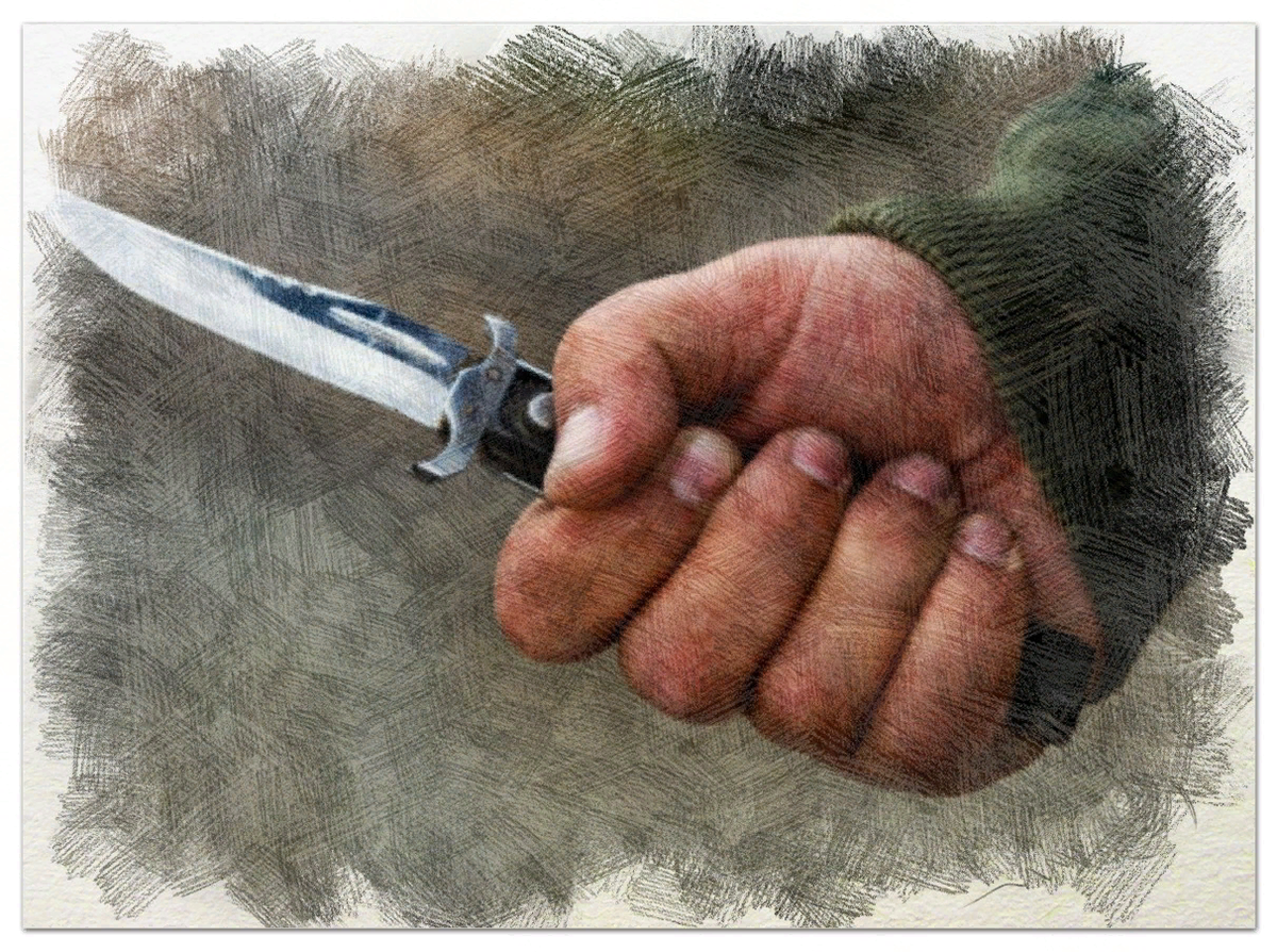 Незнакомец не намерен отступать. Он криво усмехнулся и достал нож.