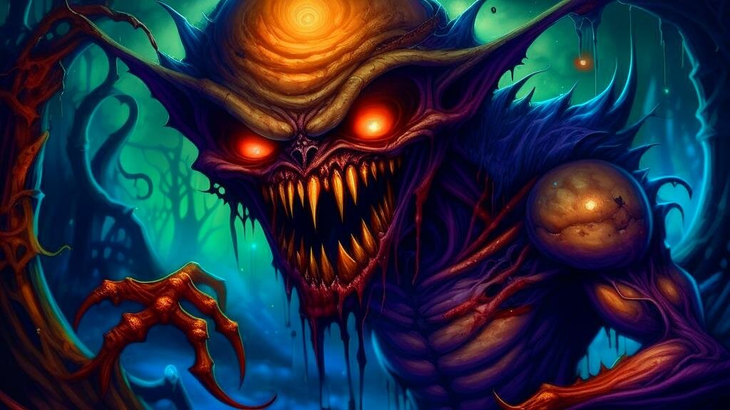 Вдруг что-то ухнуло, застонал кто-то, странный глухой хохот оглушил парня, блеснули круглые огненные глаза, зашелестело в ветре.