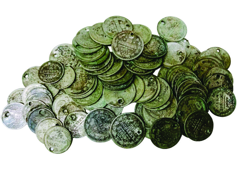 1. Большая часть отверстий обязана своим происхождением монисто и другим женским украшениям одежды. К этой группе могут быть отнесены почти любые монеты: как правило, серебро; золота не видел, но это возможно, во всяком случае, серьги из николаевских пятерок делали; и даже медно-никелевые монеты СССР. Да и период большой - от допетровской чешуи до наших дней.