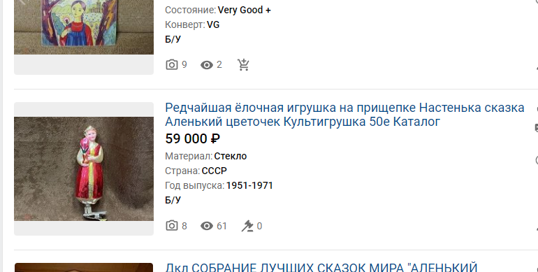 Наткнулся на одно объявление, автор которого продает советскую елочную игрушку аж за 59 тысяч рублей.