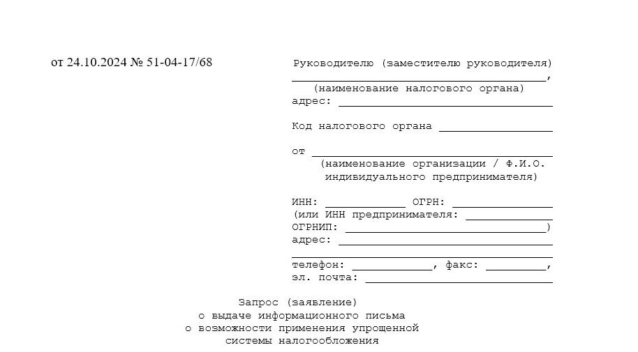 Каков образец письма о применении УСН для контрагента в 2024 году