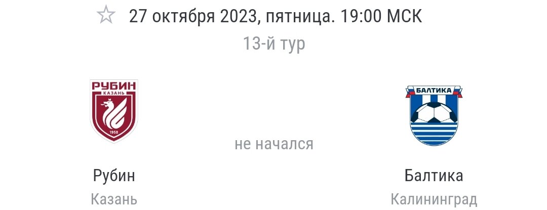 Прогноз на матч 13-го тура РПЛ. Рубин - Балтика.