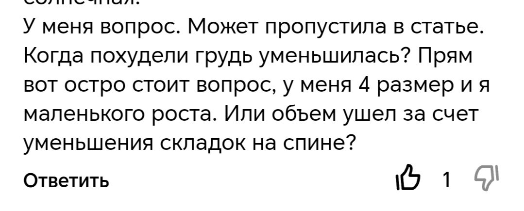 Здравствуйте, мои дорогие друзья и гости канала. Для тех, кто впервые заглянул на огонек, расскажу о себе: Меня зовут Светлана, мне 41 год и я похудела на 20 кг с марта 2022 года. Рост 161 см, начальный вес 90 кг. Сейчас вес 69 кг. Худею по системе "Гибкая диета", чередую интуитивное питание и подсчёт КБЖУ. На своем канале я веду дневник похудения, а так же делюсь понравившимися рецептами ПП, рассказываю историю своей жизни. Сегодня у меня был просто замечательный вечер, но расскажу я об этом завтра, в сейчас, как и обещала, тема о похудении, речь пойдет о груди. Спасибо моим дорогим читателям, что подкидываете мне идем для статей и сегодня я бы хотела ответить ещё на один вопрос. Я часто читаю о том, что при похудении в первую очередь уходит грудь и это логично, так как она состоит из жировой ткани, но помимо этого, есть еще железистая и соединительная ( фиброзная) ткани, и у каждой женщины соотношение этих составляющих очень индивидуальное. Я не ученый, но предполагаю, именно в завис