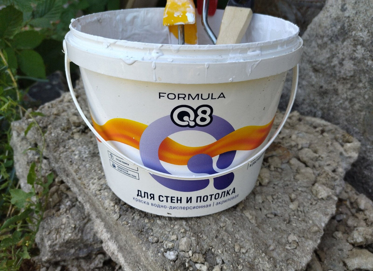Краску акриловую водно-дисперсионную для стен и потолка купил мой муж, и мы вместе покрасили ею часть внутренних стен в нашем дачном домике. Живем мы преимущественно на даче. На тот момент было лето: жара, духота, на ночь закрывать окна и двери совсем не хочется, а стройку продолжать надо. Дышать краской всю ночь – так себе перспектива. Но водная краска – особенная, ею дышать не надо. Водная основа – нет запаха, вот это огромный плюс Вернее, есть очень слабый, еле уловимый запах, напоминающий запах мела, когда его смывают влажной тряпкой со школьной доски. Запах совершенно не утомляет и не вызывает головных болей, как это бывает с обычными красками, у которых есть токсичные вещества в составе. В составе водной краски таких нет, там только: водная дисперсия акрилового сополимера, смесь наполнителей, целевые и антисептические добавки, вода. Так что как вариант для покраски внутри помещения, где еще и жить приходится, водная краска – оптимальный вариант. Супер быстрое высыхание На упаков