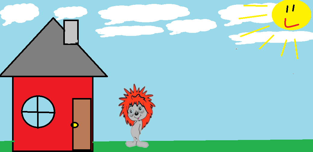 Подбегая к ёжику, медвежонок оббежал вокруг дом и смотрел на растущую траву.