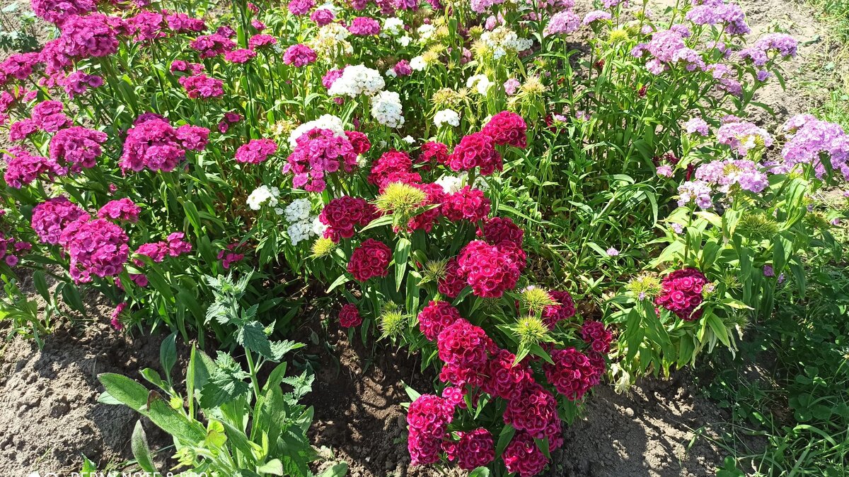 Если кто-то хочет чего-то бесконечного с ожидаемым результатам, то нужно посеять турецкую гвоздику. Посеять её можно сразу в грунт, но цветы появятся только в следующем сезоне. Растение двулетнее. Первый год сеется, всходит, зимует, на второй цветет, снова сеется, всходит, зимует и так каждый год. После первого цветения её уже не остановить. У меня эта гвоздика уже вторым заходом растет. Первая партия была посеяна еще в начале моего садоводческого пути, перед домом. Цвела исправно и упорно боролась за территорию с Арабисом. Кто кого. Никто друг другу не уступал, зато, с другой стороны, пырей взял в плен её практически всю. Полоть было некогда и бесполезно. В тот период у нас еще строительные вопросы были не решены (можно подумать, они что вообще решенными бывают) поэтому не до гвоздики было. А когда пришла пора плитку уложить, то вообще шансов ей не оставили. Не печалилась я, конечно, поэтому поводу. Как-то сложилось у меня, что это простенький цветок из деревенских палисадников, ничег