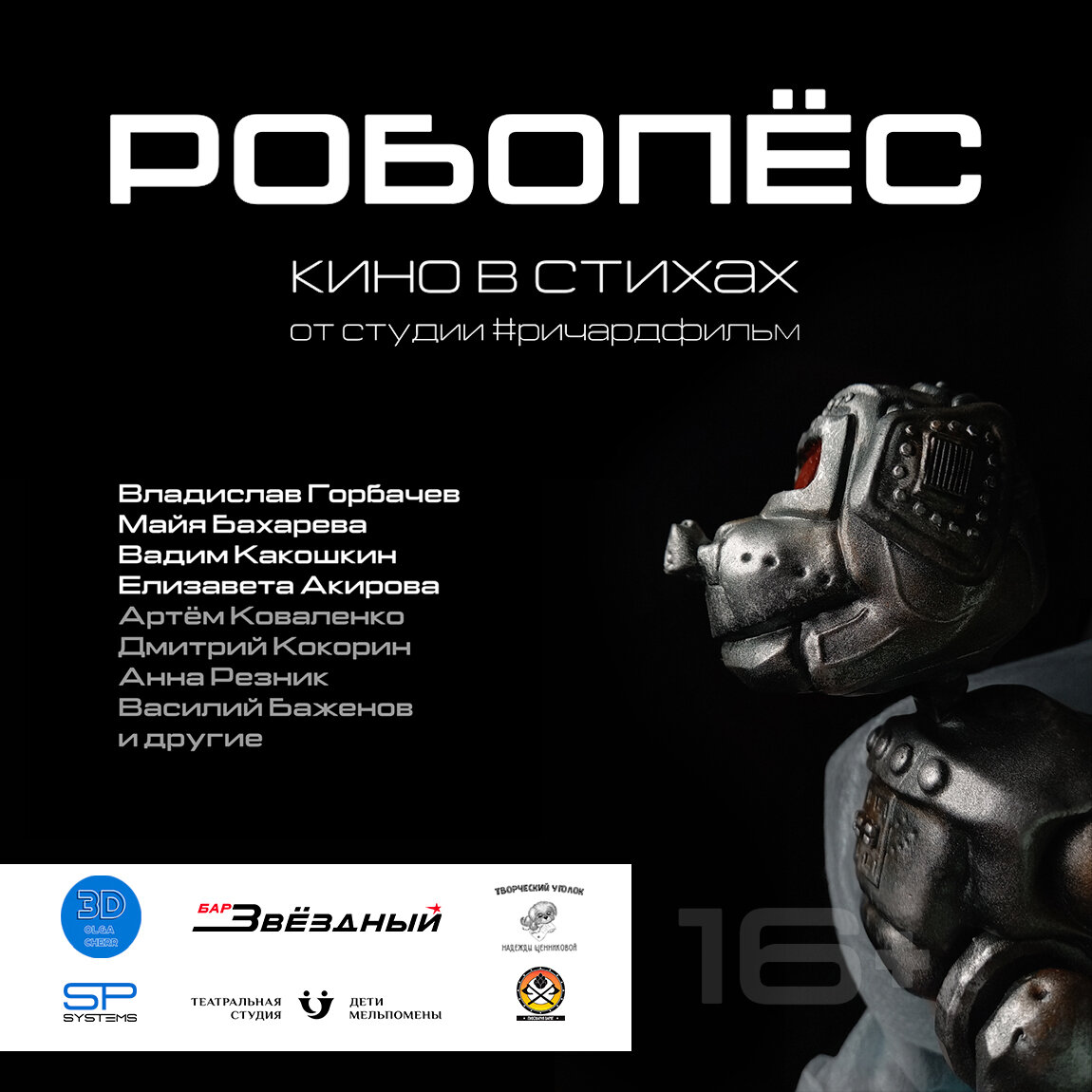 22 октября 2023 года состоялась премьера фильма “РОБОПЁС” в Интернете. Короткометражка снята студией #ричарфильм на мои стихи, постановкой мы занимались вместе с Татьяной Завадской, совместно с Дмитрием Григорьевым — звукомонтажём и музыкой. Да, кстати, это первый фильм, в котором есть один трек, созданный мною (хотя очень давно не трогал сэмплы). Роли в этом фильме исполнили прекраснейшние актёры: Владислав Горбачев, Майя Бахарева, Вадим Какошкин, Елизавета Акирова, Артём Коваленко, Василий Баженов, Дмитрий Кокорин, Анна Резник, Диана Лось, Семён Лопата, Клим Якушечкин, Алексей Шаранин, Дмитрий Григорьев, Василий Ропало, Андрей Ананченко и другие. Каждый в точности справился с задачей и суперски передал характер прописанных персонажей. “РОБОПЁС” является приквелом фильма 2016 года “Резиновые телохранители”. И по-совместительству ремейком сериала “Лучший Институт На Континенте”. 3D-графику создавала Ольга Черр. Чуть позже в её блоге выйдет материал о создании 3D-моделей и анимации: что