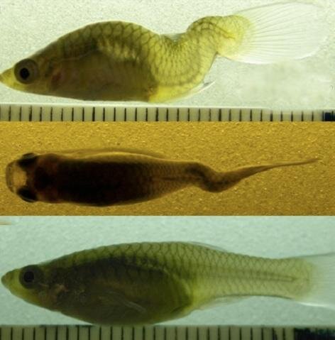 Что делать, если у рыбы искажена форма тела Некоторые рыбы изменяют форму, когда растут,- например, дискус Symphysodon spp. У некоторых развивается деформация тела, являющаяся частью их "нерестового наряда". Среди таких деформаций особенно известен так называемый "затылочный горб" - жировой нарост в области лба, который появляется у самцов некоторых видов цихлид, когда они становятся взрослыми или участвуют в нересте (у самок он тоже бывает, но реже). Совет Если не рассматривать ожирение, искажение формы тела у взрослой рыбы вероятнее всего происходит в результате болезни, вызванной патогенными организмами или паразитами. Такое может случиться и с молодыми растущими рыбами, но в таких случаях в числе причин могут быть плохое качество воды и недостаточное питание. Если какая-либо из этих двух проблем возникает там, где выращивают выводок молодых рыб, то все они, скорее всего, будут поражены примерно в одинаковой степени.