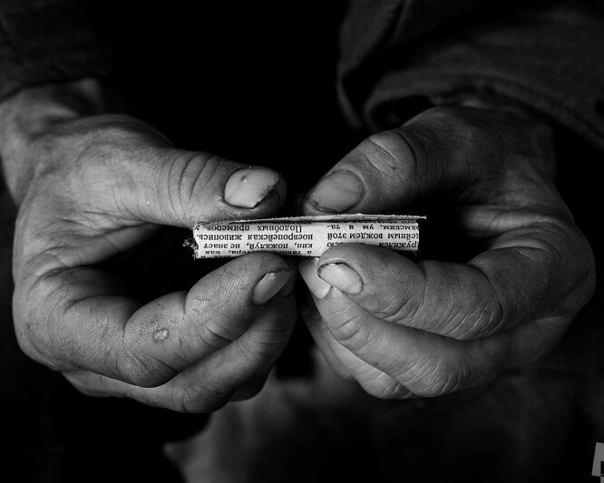 Где-то в недрах кармана своего плаща паренёк выудил зажигалку. Липкие тонкие нервные губы облепили сухую папиросную бумагу. Цирк-цирк. Искра-искра. Нет огонька, который бы укусил кончик папиросы, съедая угольком её содержимое, угощая, густым дымом лёгкие парня. Малец всё же попросил деда подсобить ему с огнем. Тот вытащил реальное огниво из кармана своего бушлата, цыкнул им разок другой и табачная крошка заискрилась, заплясала на конце самокрутки обдав ароматом приторного табака лицо пацана.