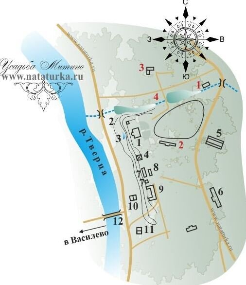 Теперь наш пеший путь лежит в д. Василёво, которая находится на другом берегу реки Тверца. Здесь некогда располагалась усадьба Львовых, которая со временем разрослась, в связи с чем и появилась усадьба в д. Митино (где мы с вами недавно и побывали). Картинка ниже отсюда.
