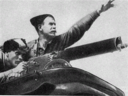 Тачанка проносится к реке, от которой убегают солдаты, и встает у тех на пути.