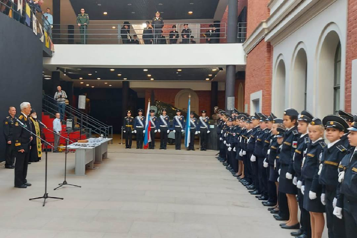 В атриуме Центрального военно-морского музея им. императора Петра Великого учащиеся кадетских классов средней школы №516 Невского района Санкт-Петербурга дали кадетскую клятву.