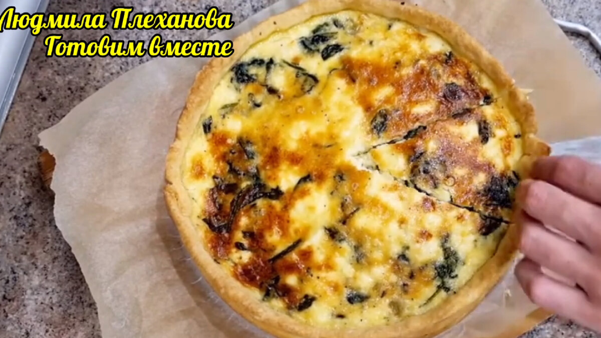 Этот пирог очень вкусный как в горячем, так и в холодном виде. Но чаще всего подаю его в холодном виде в качестве закуски В чаше смешиваем просеянную муку и хорошо охлаждённое сливочное масло. Очень быстро перетираем масло с мукой в крошку. Добавляем соль, одно яйцо, пару столовых ложек ледяной воды и быстро собираем тесто в комок. Убираем тесто в полиэтиленовый пакет и холодильник на 30 минут. Сами тем временем займёмся начинкой Одну среднюю луковицу режем небольшими кубиками, зубчик чеснока измельчаем удобным способом и обжариваем до мягкости лука на небольшом количестве растительного масла Хороший пучок шпината мелко режем и выкладываем в сковороду к луку. Солим, перчим по вкусу Часто вместо Шпината добавляю зелень: Укроп, Петрушку, Зелёный лук Готовим всё это ещё пару минут (до мягкости шпината) Перекладываем начинку в тарелку, чтобы она остыла. Пока начинка остывает, делаем заливку. В чаше смешиваем сливки и сырые яйца. Добавляем соль, перец по вкусу и перемешиваем Тепер
