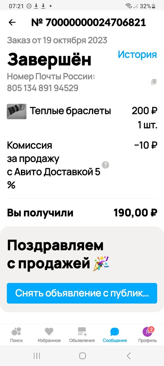 Думаю мой опыт продажи с Авито Доставка будет интересен, если вы что-то покупаете на Авито. Первый раз продавала с доставкой Авито. Клиент заказал и сразу сделал оплату в Авито. Автоматически появился номер заказа на Почту Россия. Мне осталось только отнести мой товар на почту. Через 5 дней мне пришло сообщение, что товар получен и сразу перевели мне денежки через СПБ или можно ещё на карту. Все чётко и слаженно сработано! Это, конечно, выгодно, в первую очередь, покупателю. Во-первых, это гарантия, что товар будет отправлен и получен. Во-вторых, у него есть возможность отказаться тут же на почте и гарантированно получить обратно свои деньги. И в третьих,ЧТО важно! Покупателю не нужно сообщать продавцу свой адрес и ФИО. Только один раз Авито. Это очень удобный сервис для покупателя. С продавца, правда, берется комиссия 5% за доставку с Авито. Но это не проблема. Зато покупателю спокойнее и он скорее решится заказать товар у вас. Так что мне понравился этот сервис. Рекомендую.
