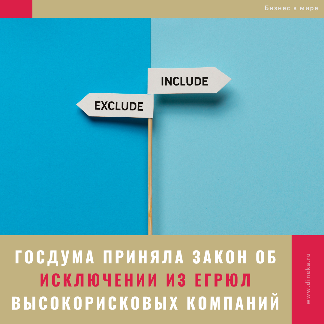 Госдума приняла в третьем чтении закон об исключении из ЕГРЮЛ (ЕГРИП) юридических лиц (ИП), которых на платформе Центрального банка «Знай своего клиента» отнесли к категории высокорисковых.