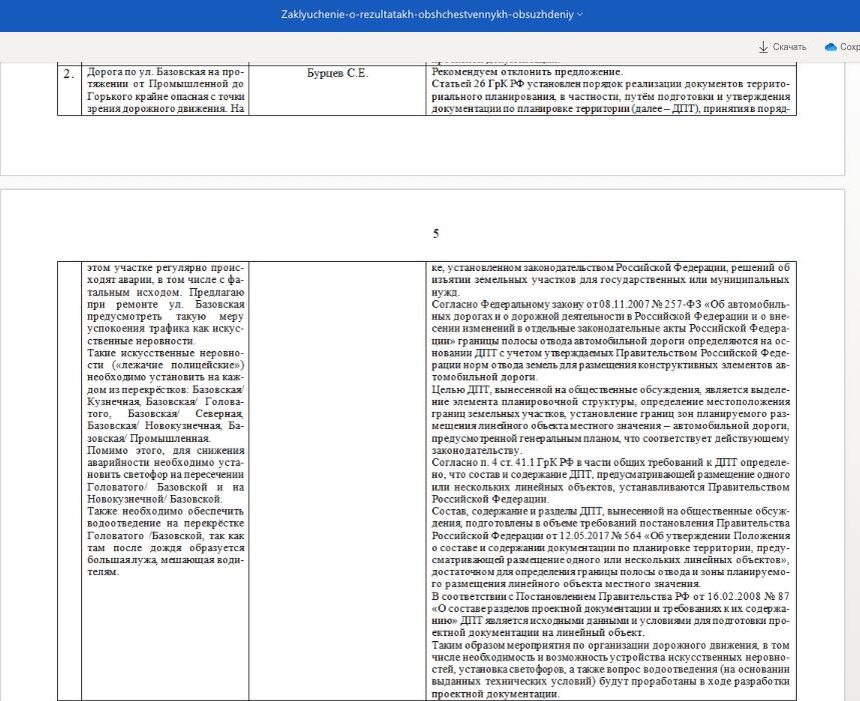 В кубанской столице местный активист Сергей Бурцев внёс на общественных слушаниях ряд предложений по реконструкции улицы Базовской, где часто происходят аварии, но его варианты по улучшению ситуации на дороге были были отклонены. Об этом 25 октября стало известно из сообщений Сергея Бурцева в его Telegram-канале. Накануне в Краснодаре администрация инициировала проведение общественных обсуждений «Об утверждении документации по планировке территории (проекта планировки территории и проекта межевания территории) для размещения линейного объекта (автомобильной дороги местного значения, сетей инженерно-технического обеспечения) по улице Базовской, от улицы Промышленной до улицы им. Будённого, в Центральном внутригородском округе города Краснодара». Краснодарский активист Сергей Бурцев вместе со своими единомышленниками предложил в ходе реконструкционных работ на улице Базовской на каждом перекрёстке установить искусственные неровности «лежачие полицейские»). Помимо этого, он предложил уста