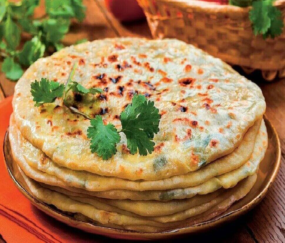 Обжариваем каждую лепешку на сухой сковороде на среднем огне. И смазываем готовую сливочным маслом. Пока жарим остальные лепешки, готовые накрываем миской, чтобы не стыли.