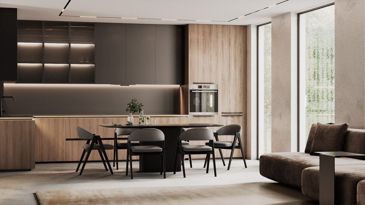 Минимализм в дизайне кухни становится все более популярным, и черные фрезерованные фасады являются одним из ключевых элементов этого стиля. Они создают строгий и элегантный образ, который подчеркивает чистоту линий и отсутствие излишеств.