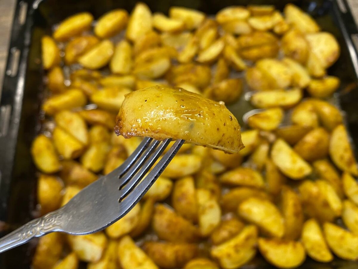 В идеале, такая картошка должна получиться хрустящей снаружи и мягкая внутри.