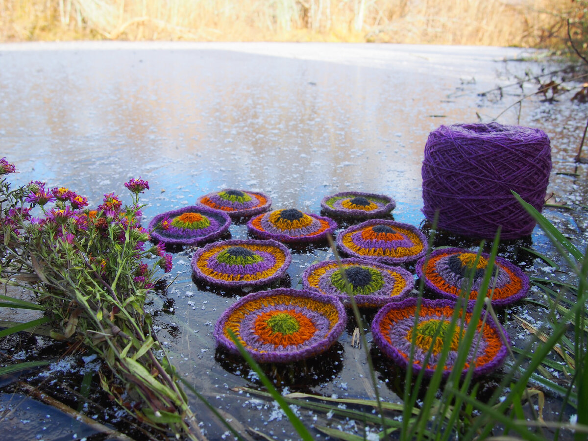 От автора: Елена, а мы не наказываем, если ничего не делалось в вязании)). Но всегда приветствуем новые вдохновительные фото! И в сиреневых оттенках ваших мотивов я вижу поздние астры, а ещё безвременники - очень к лицу осени ваша шаль... а уж с зимними узорами первых льдинок на реке она и вовсе будет в полной гармонии... Жду!