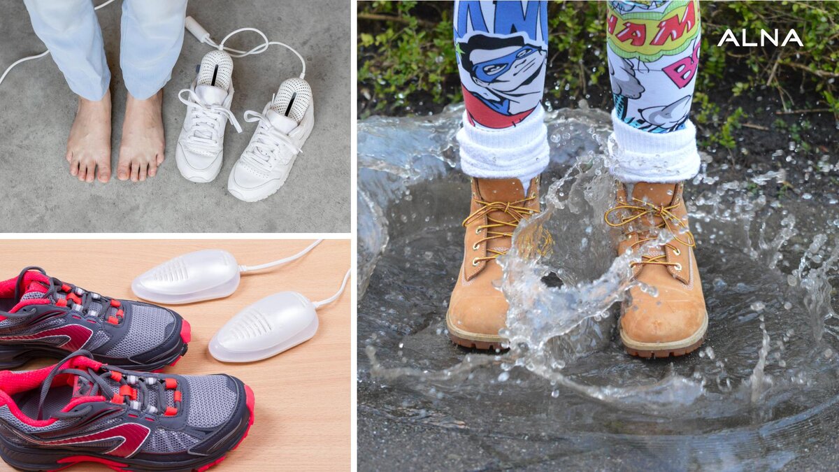 Осень в разгаре и пока радует теплом и сухим асфальтом. Но дожди и слякоть не обойдут нас стороной. Распространенное последствие осенней и зимней погоды – мокрая обувь. Из-за того, что у большинства людей одна дежурная пара сапог на все случаи жизни, времени на высушивание катастрофически не хватает. Мокрые ботинки отправляются под батарею, поближе к каминам, печам и другим источникам тепла, не задумываясь о последствиях. После такой сушки появляются трещины, обувь теряет форму, деформируется. Существуют другие эффективные способы быстро высушить любимую пару обуви. Подготавливаем обувь к сушке Проверенный дедовский способ высушить промокшую обувь Скомкав ненужные газеты, салфетки, набейте ими промокшие ботинки. Влага впитается, форма обуви восстановится. Менять бумагу нужно по мере промокаемости, при возможности каждые 3-4 часа. В некоторых случаях обувь лучше обернуть бумагой и сверху. Сушим обувь «солёными» носками Возьмите плотный носок и насыпьте в него соль. Сложите носок в обув
