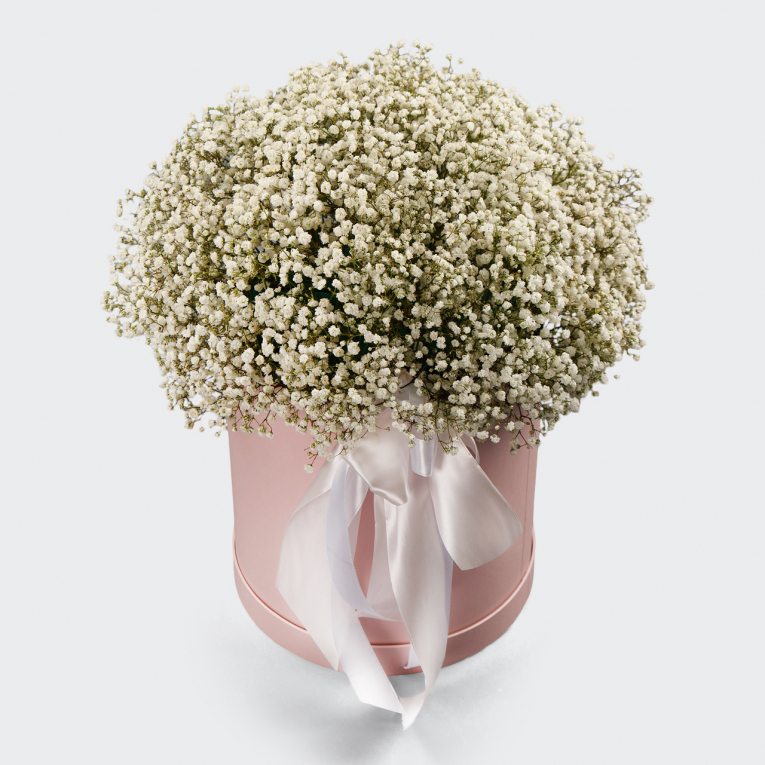 Великолепная композиция «Добрые сны» из гипсофилы в шляпной коробке дымчато-розового цвета словно создана, чтобы передать самые нежные пожелания ✨.