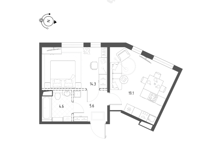 Планировки квартир неправильной формы — настоящая головная боль. Некоторым кажется, что это некая «изюминка» интерьера. Но на деле пространство часто получается ломаным, да и подобрать мебель будет непросто. Я выбрал 3 однушки с неправильной формой планировки в новостройках Санкт-Петербурга. На их примере покажу, какие минусы есть в таких квартирах и что можно сделать, если вы уже выбрали такое жилье. 1. Квартира 43,6 м. кв. ЖК «Domino Premium» на Белоостровской Самая большая из представленных квартир. Но это не помогло застройщику сделать ее удобной. Первый недостаток — большая прихожая (5,6 м. кв.) относительно площади всей квартиры. Кроме этого несущая стена между комнатой и кухней не позволит объединить или изменить площадь комнат. Например, сделать спальню меньше, отдав больше пространства кухне-гостиной. Или, наоборот, сделать спальню еще больше, организовав там гардеробную и хранение. Есть и плюсы: перегородки санузла можно демонтировать. Это дает возможность сделать ванную
