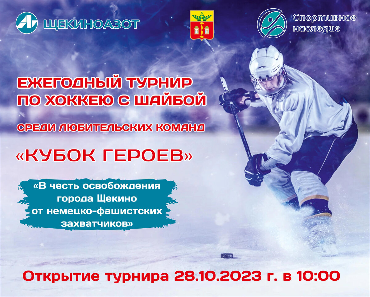 Компания «Щекиноазот», продолжая реализовывать направления социальной политики, развивать и поддерживать различные виды спорта в Щекинском районе, а также формировать здоровый образ жизни населения, приглашает желающих 28 октября стать зрителями ежегодного турнира по хоккею с шайбой среди любительских команд «Кубок героев» в честь освобождения города Щекино от немецко-фашистских захватчиков.