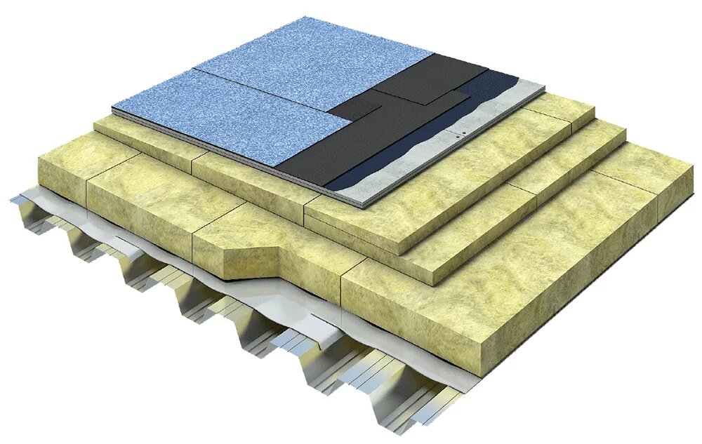 2. Утеплитель. Для плоской кровли рекомендуется использовать утеплитель из экструдированного пенополистирола (XPS) или полиизоциануратной пены (PIR). Утеплитель помогает снизить теплопотери и предотвратить образование конденсата.