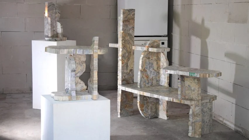 Студент-дизайнер Виллем Звиерс собрал старые книги и использовал их для создания небольшой коллекции мебели, которая представлена на выставке выпускников Design Academy Eindhoven. Коллекция под названием «Преобразованные остатки» включает в себя приставной столик и настольную лампу и книжную полку из книг. По оценкам Цвирса, для изготовления трех предметов потребовалось несколько сотен томов, которые он смог бесплатно получить в местных магазинах подержанных книг, их планировали выбросить из-за мелких дефектов. Вернувшись в свою студию с горой книг, Цвирс снял обложки и с помощью циркулярной пилы разрезал книги на горизонтальные полоски, обеспечив при этом структурную целостность каждого корешка. Подобно блокам в Тетрисе, эти фрагменты складывались друг на друга, сгибались и сжимались, чтобы заполнить различные формы, сделанные вручную, пропитывались разведенным клеем для дерева и уплотнялись с помощью резинок и деревянных зажимов. В результате получился композит, напоминающий древесно