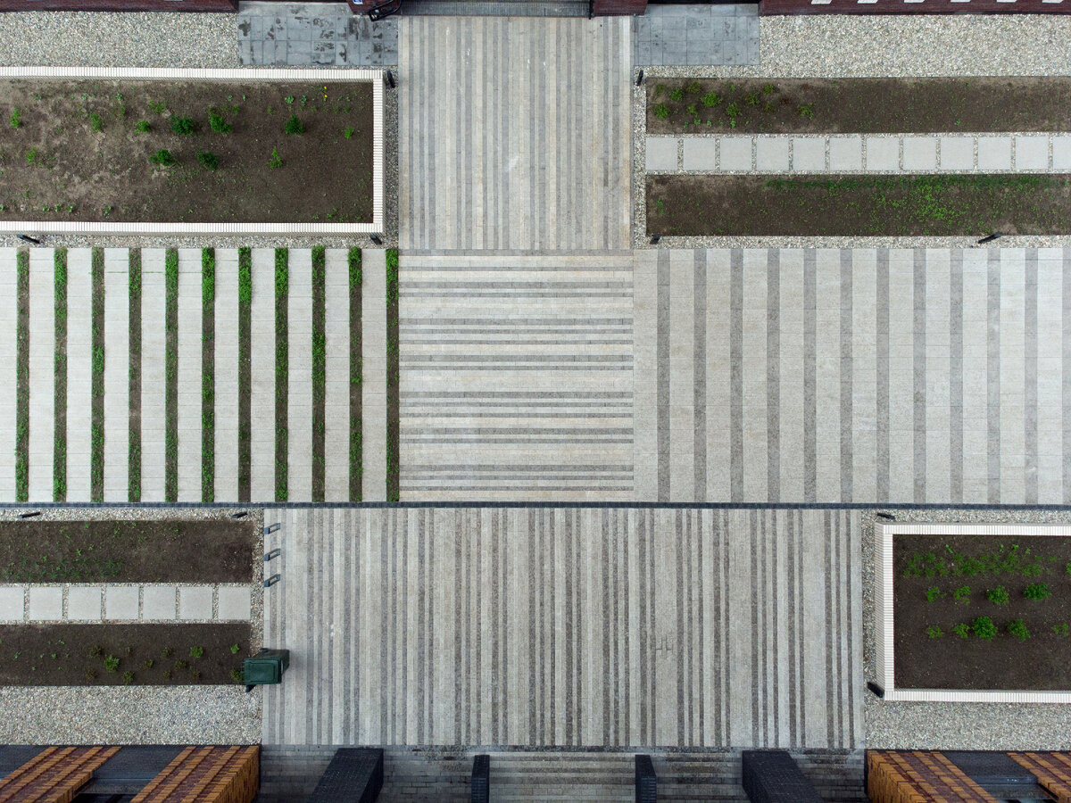- динамичные пешеходные зоны - плиты 9.Псм.8 "Паркет" (фактуры Гранит серый с черным; Стоунмикс белый с черным, черный с белым; Листопад Кварцит; Стандарт черный)