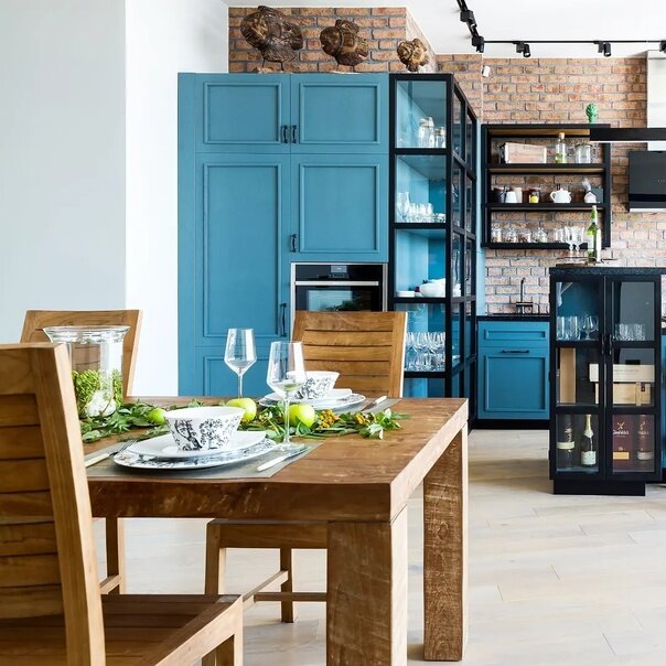Одним из главных аспектов проекта является использование природных материалов и функциональность помещений. Главным украшением кухни-гостиной стало сочетание лофт и эко стиля. Грубоватую фактуру кирпичной стены кухни дополняет изящный стол Soula и стулья Claudia. 🪑