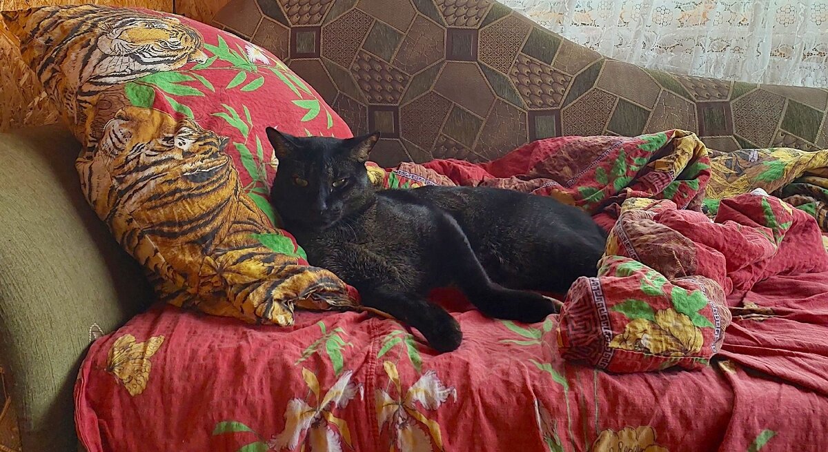 Вечером домой пришли Котя с Персиком. И Маслина, разумеется, была. Но от Кроши наши кошки пока не в восторге, поэтому они сразу переместились наверх, где, кстати, и поужинали (эх, все «золотые правила» нашего дома летят в тартарары). Поев, коты решили, что, пожалуй, и заночуют у нас. И в количестве 5 организмов разных видов, размещенных по разным комнатам и этажам, мы улеглись спать… В какой-то момент я проснулась от того, что кто-то деликатно, но настойчиво пробирался ко мне под одеяло. Это оказался Персик. Я приподняла руку, он залез и расположился вдоль моего туловища, положив голову мне на локоть. Я приобняла кота и попыталась заснуть, но не тут-то было! Внизу очень громко «страдала» Кроша, то бася, то скуля, то воя. Лестницу она, конечно, вчера преодолела вслед за Кексом, но до стабильности еще не дошло. А сама поднимать ее на второй я не хотела, дабы не лишать спокойствия котов. Так я лежала минут 20, наверное, так как заснуть уже не получалось (хотя спать под такой «концерт», ви
