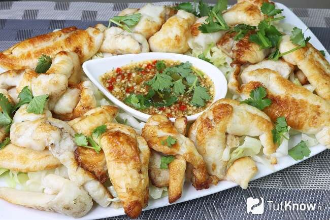Всем привет, в этом рецепте я расскажу, как тайцы готовят свежие яйца кальмаров. Как правило их жарят на сковороде. Готовит моя тайская супруга, поэтому в качестве рецепта не нужно сомневаться. Ингредиенты: Ингредиенты для тайского соуса: Пошаговое приготовления жаренных яиц кальмаров и острого тайского соуса 1. В большую и глубокую сковороду налить растительное масло примерно 1/3 стакана. Нагреть и выложить яйца кальмаров. Жарим их по принципу картофеля: выложить на сковороду и не мешать. Огонь средний. Как только они подрумянятся – переворачиваем и также поджариваем с другой стороны. Румяные яйца кальмаров достать на сито, чтобы стек лишний жир. 2. Половину небольшой капусты нашинковать и бросить в сковороду. Тушите до тех пор, пока она не станет мягкой. 3. Готовим тайский острый соус с чили. В чашу блендера загрузить: чеснок – 15 зубчиков, перец чили – 15 стручков, пальмовый сахар – 1 столовая ложка (он имеет аромат в отличии от сахарной свеклы, но на худой конец обычный сахар тоже
