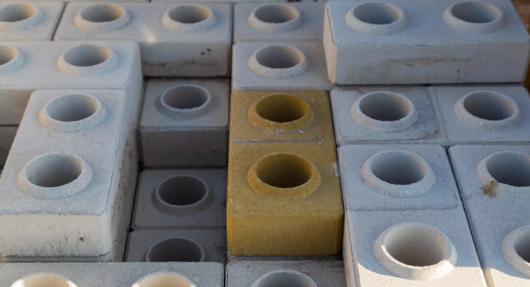 В РФ сделали лего-кирпич из отходов добычи алмазов Ученые из САФУ разработали прочный керамический клинкерный кирпич из отходов алмазодобывающих предприятий. Этот кирпич выдерживает более 75 циклов заморозки и разморозки, обладает устойчивостью к огню, химическим и механическим воздействиям, а также не меняет цвет под воздействием солнечных лучей и безопасен для здоровья. Образцы обладают прочностью М400, свечением 1800–1900 кг/м³ и водопоглощением от 10 до 12 процентов, соответствующими нормативам. Эти образцы подверглись процессу обжига при температуре 150 градусов в течение 10 часов.