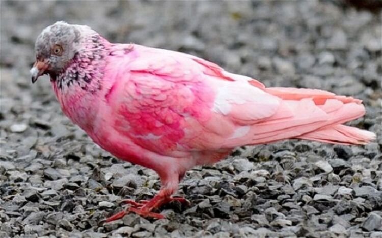 Все мы знаем о розовых фламинго, а есть ли в природе розовые голуби? Голубь, которого вы видите на снимке, был сфотографирован в Лондоне туристом из Франции. Это очень редкий вид розового голубя — Nesoenas Mayeri — действительно существует, но живут эти птицы в Маврикии, за тысячи километров от Англии и имеют серые крылья, которые отсутствуют у нашего героя. Эксперт по птицам Тим Уэбб из RSPB подтверждает, что это голубь, но не может понять откуда взялось такое оперение. Регулярное употребление в пищу продуктов с высоким содержанием бета-каротина и кантаксантина — безвредных натуральных пигментов пищи — может изменить цвет перьев, сказал он. К примеру розовый фламинго получает свой окрас из-за того, что питается креветками. Кроме того голубь мог быть окрашен намеренно или случайно попал в лужу из цветной воды. Помимо лондонской достопримечательности, в природе существует редкий вид семейства голубиных - Розовый голубь (лат. Nesoenas mayeri) и обитает он только на острове Маврикий.