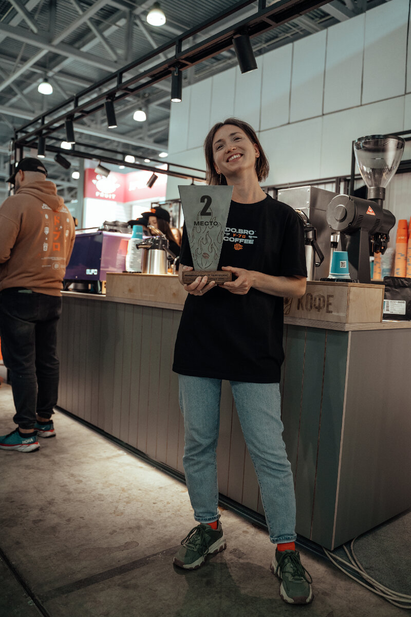 Всегда замечали, как чашка хорошего кофе может изменить настроение на целый день? DO.BRO COFFEE знает, как дарить радость через чашку ароматного кофе. И сегодня мы хотим рассказать историю, которая придала нашей кофейне особое вдохновение. В Национальном чемпионате по обжарке кофе 2023, который проходил в сентябре, наша обжарщица, Татьяна Недогарова, заняла второе место. Татьяна - не просто обладатель серебряного приза, она - душа DO.BRO COFFEE, и ее страсть к кофе отражена в каждой чашке. Чемпионат стал для нас особенным. Соревнование было жарким, буквально и фигурально. За ростерами BESCA соревновалось 49 участников со всей России, от Владивостока до Калининграда. География была широкой, а уровень соперников высоким. Этапы чемпионата включали пробную обжарку, сэмпл-обжарку, грейдинг зеленого зерна и обжарку двух моносортов. Оценка велась по правилам Мирового чемпионата по обжарке кофе. Оценивался не только бленд, но и второй моносорт, что добавляло элемент сюрприза и творчества