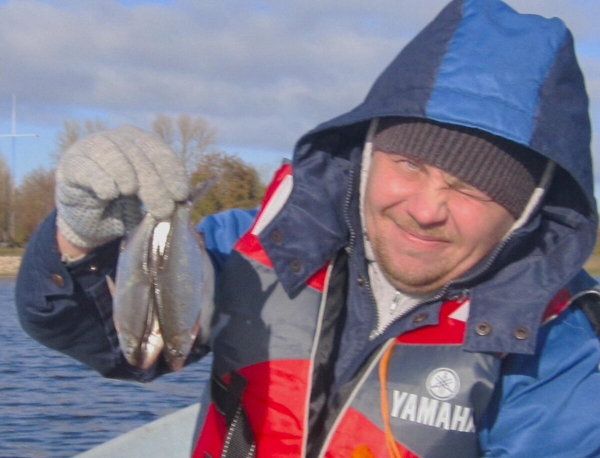 25.10.2023 мы с Андреем прибыли в Креницы к 7 часам утра. Дежурный по пирсу указал на Пеллу №45. Мы загрузили свои вещички. Администраторша пришла в 8-50. Мы оплатили лодку с мотором заправленным бензином: 4 тысячи рублей + 5 тысяч рублей (залог «а вдруг!»). Пообщались на берегу с рыбаками: косяк окуня приходил и «жрал» 23.10, а 24.10 уже подрассосался, но поклёвывал. На воду мы вышли в девятом часу и пошли с двумя дорожками к бакену №4. Щуки не было. Прикормили бель в надежде, что за белью придёт и хищник. Бель стала веселить Андрея: "Ну хоть что то!" Час мы напрасно прождали хищника и пошли дорожить против течения у берега. Солнышко пригревало. Благодаря пробковым ручкам спиннинга «неопреновых перчаток» мне при минусовой погоде не понадобилось. На тюльпане слегка намораживался ледок. У острова мы вытащили спиннингом чей - то утопший садок и подарили его двум дамам, ловившим с берега. Дамы нас повеселили: «А подсачеков не попадалось?» Я сказал: "Водяной отвалил на обед. Вернётся