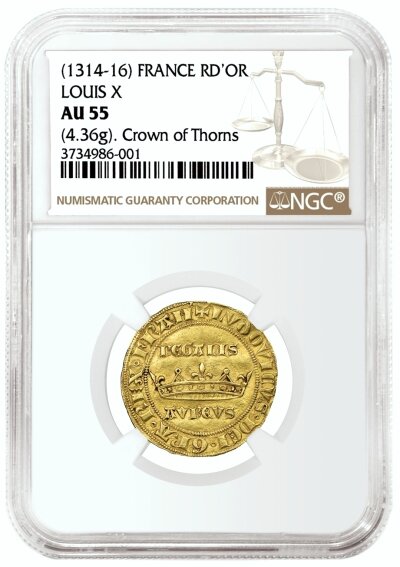 Numismatic Guaranty Corporation® (NGC®) сертифицировала один из шести известных экземпляров Королевского д’Ора, отчеканенных во время правления Людовика X во Франции в 1314–1316 годах. Французская золотая монета получила оценку NGC AU 55.
