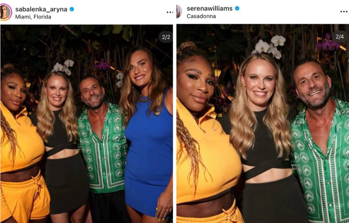 Кульминация теннисного сезона в виде турнира в Канкуне (Мексика) стартует в это воскресенье. На нем позицию первого номера мирового рейтинга будет отстаивать белоруска Арина Соболенко. Перед поездкой в Мексику она появилась на вечеринке в Майами. Соболенко присутствовала на открытии итальянского ресторана Casadonna, принадлежащего бизнесменам Дэвиду Грутману и Ноа Теппербергу, которые пригласили на церемонию открытия еще ряд знаменитостей. Так, в социальных сетях появилось фото, на которой Арина позирует с бывшей первой ракеткой мира Каролин Возняцки и Викторией Бекхэм. На другом снимке с ними находится легенда тенниса Серена Уильямс. Серена разместила фотографию в своем аккаунте. Но от внимания поклонников американки не ускользнуло то, что она отрезала на ней Соболенко. Вот как прокомментировали поступок Уильямс читатели Sport.cz: Vít Borbély: