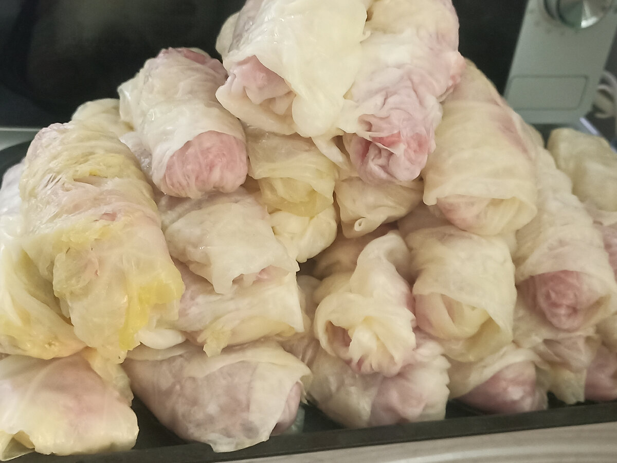 Дошли вчера до аптеки, забрали заказ. Лёд немного подтаял, но в тени было очень скользко. По пути купили 2 кг куриного фарша, Пришли домой, отварила рис, сделала фарш на голубцы, отварила 2 вилка капусты, один большой, второй поменьше Накрутила голубцов, заморозила. Сегодня утром разложила их по пакетам. Посчитала, ради прикола, сколько по цене обошёлся один голубец. Если не брать в расчет стоимость риса, лука, капусты, то один голубец обошёлся в 20 рублей. Фарша мы купили на 600 рублей. Из него получилось 30 голубцов. Интересно, почем голубцы в кулинарии или в столовых? Хотела пожарить карасей, которые мешались в морозилке, но поперебирала заморозку и достала ещё два пакета карасей. Куда их столько? А места в морозилках больше нет, голубцы впихнуть некуда. Поглядела я на этих карасей и решила сделать консервы. Обрезала головы, хвосты, плавники, нарезала рыбу на кусочки, добавила лук, морковку кубиками, томатную пасту, соль, перец горошком, растительное масло и поставила тушитьс