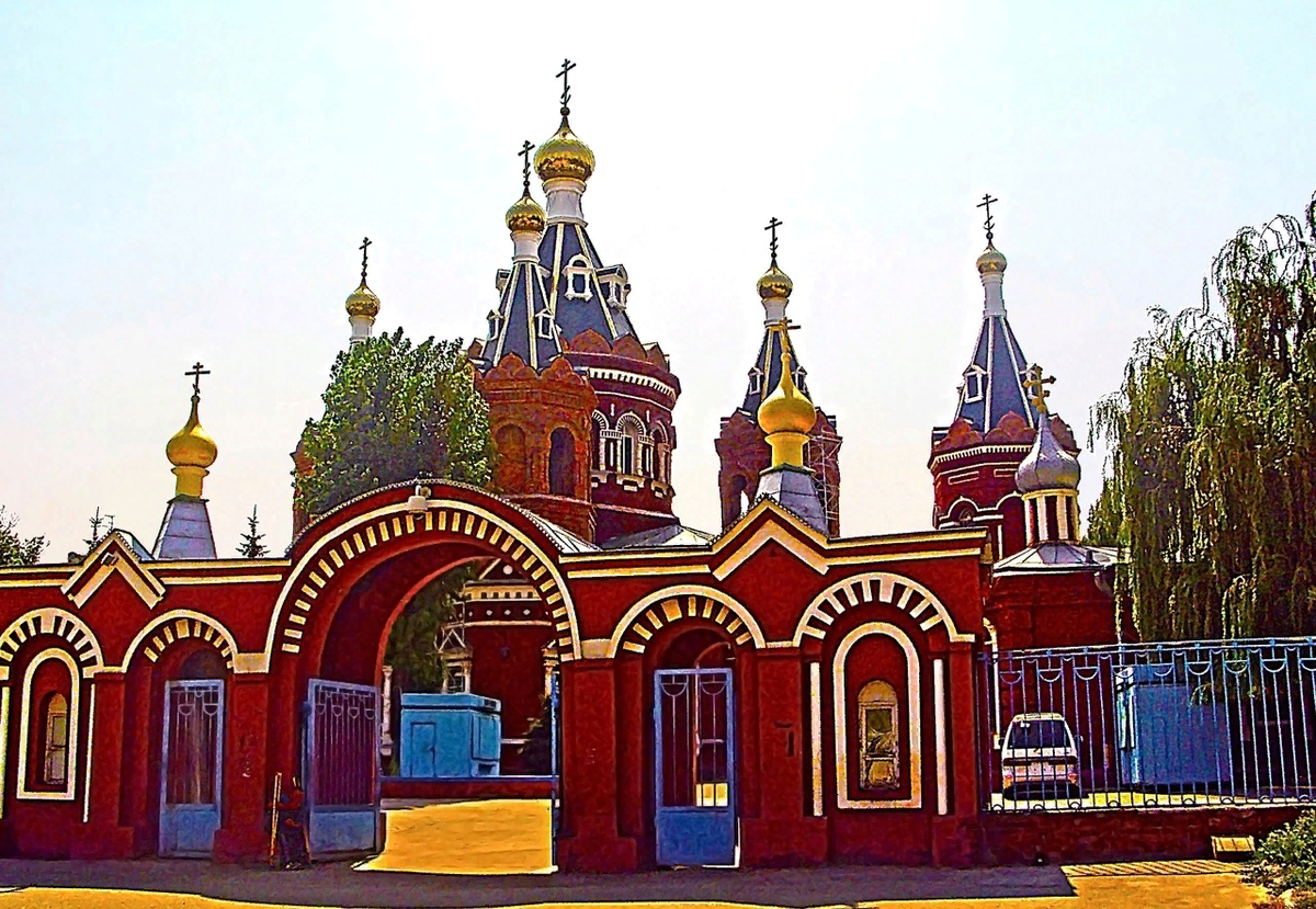 Тот, хоть и однокупольный, но тоже имеет стеклянные витражи, и купол так же опирается на вытянутый цилиндр с окошечками башенного типа. И назначения похожи - и в том, и в другом случае храмы возведены на мемориалах Великой Победы.